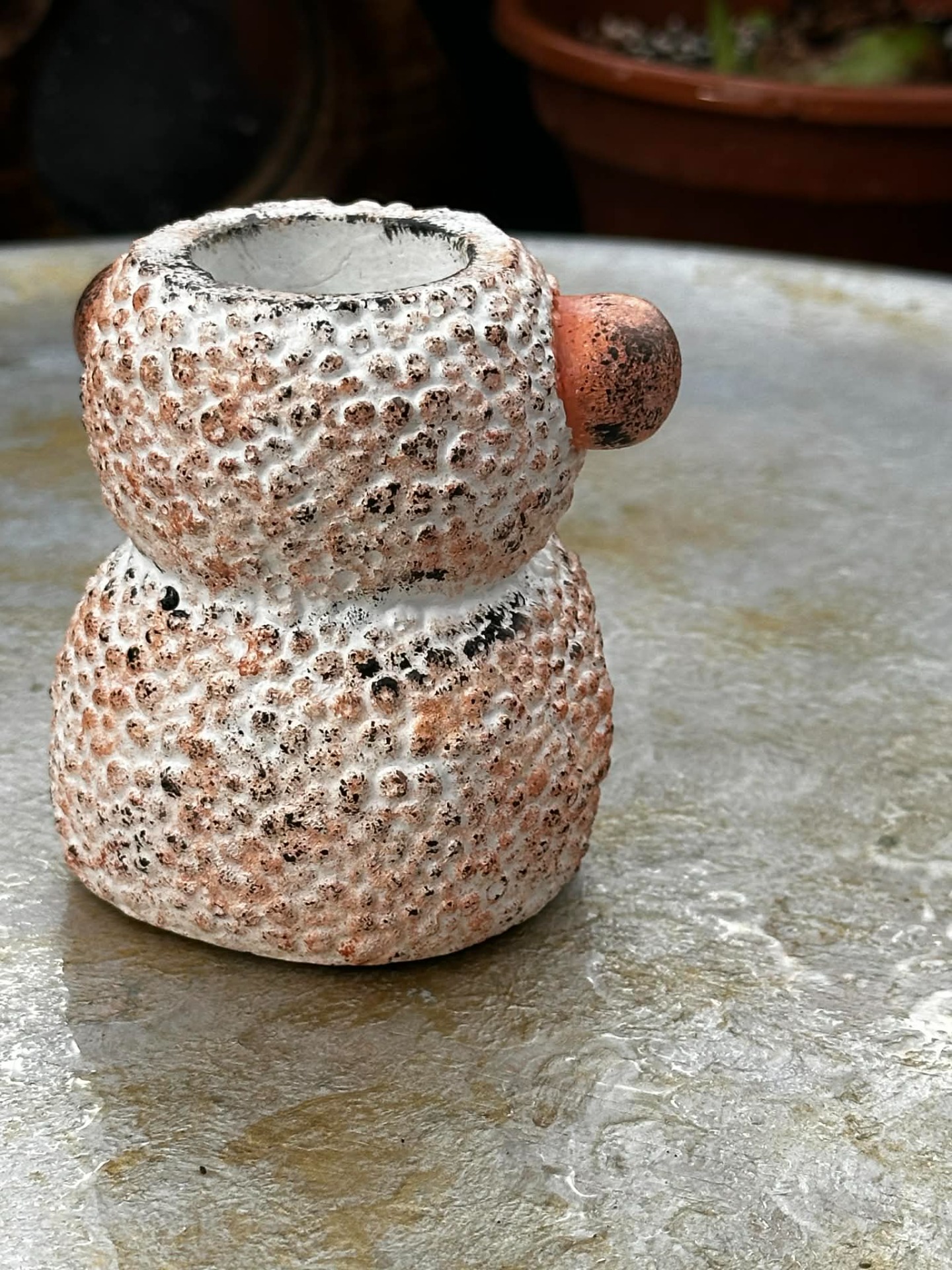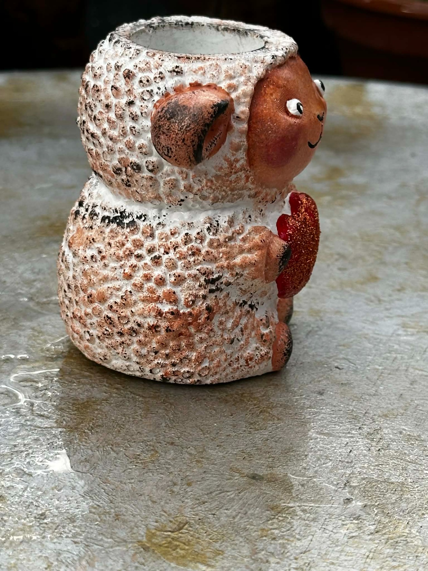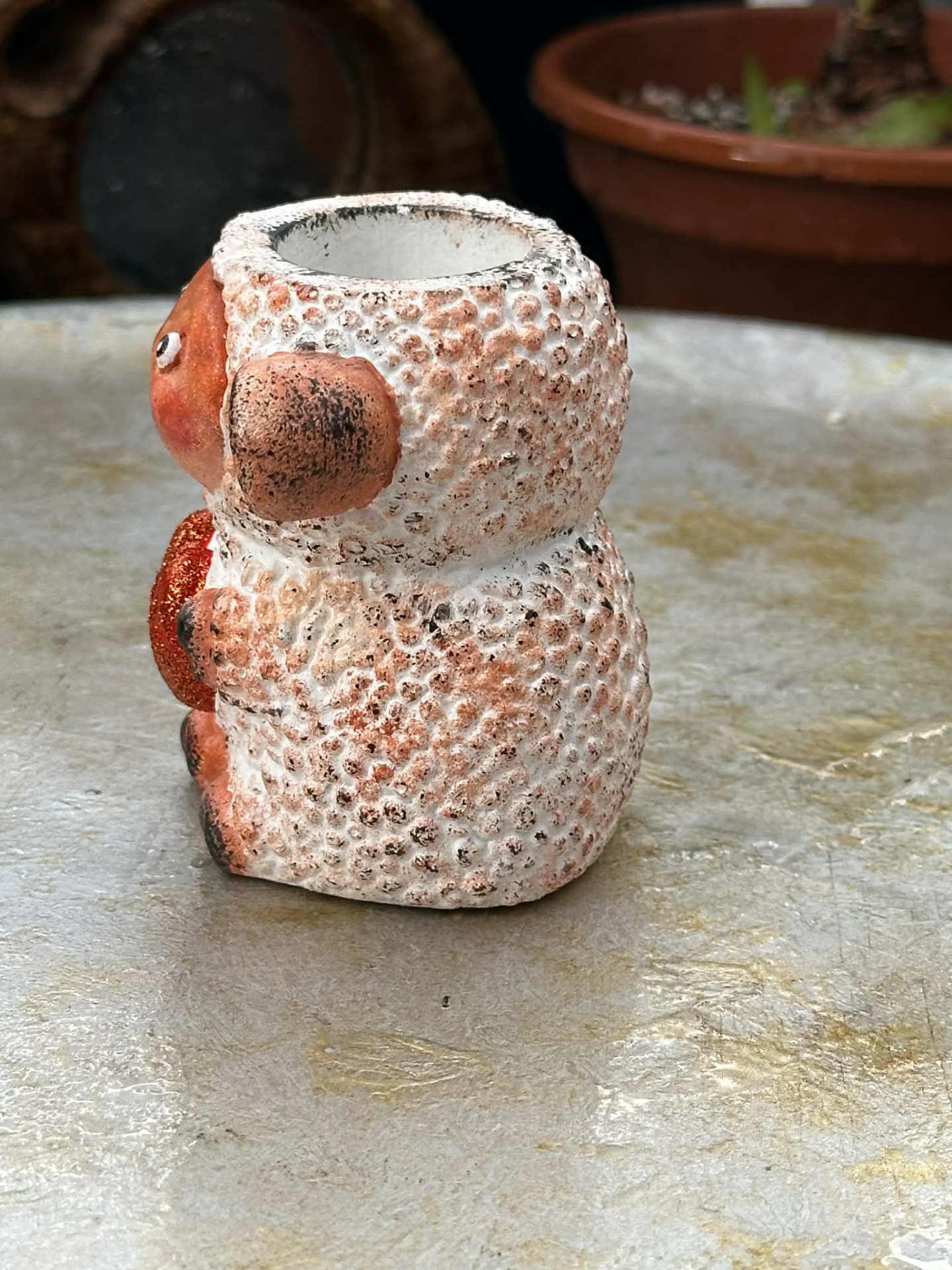 Béla nemcsak egy mosolygós kis fagyálló kaspó, hanem egy igazi sokoldalú szeretetőrző. A kezében tartott csillogó szívvel kedves ajándék lehet bárkinek, aki szereti a különleges, kézműves darabokat.