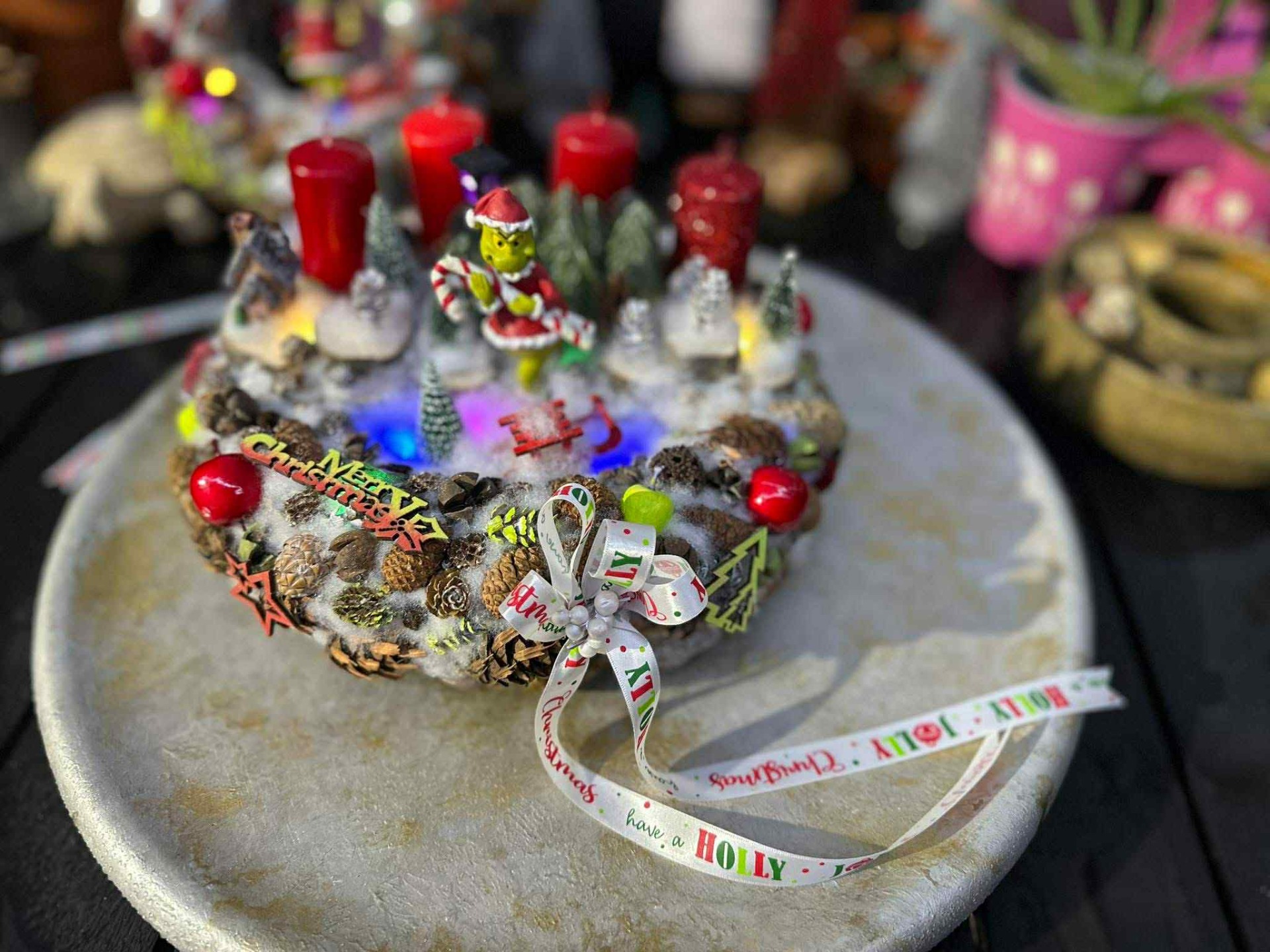 Grincses vidám adventi koszorú, világítással - RENDELHETŐ