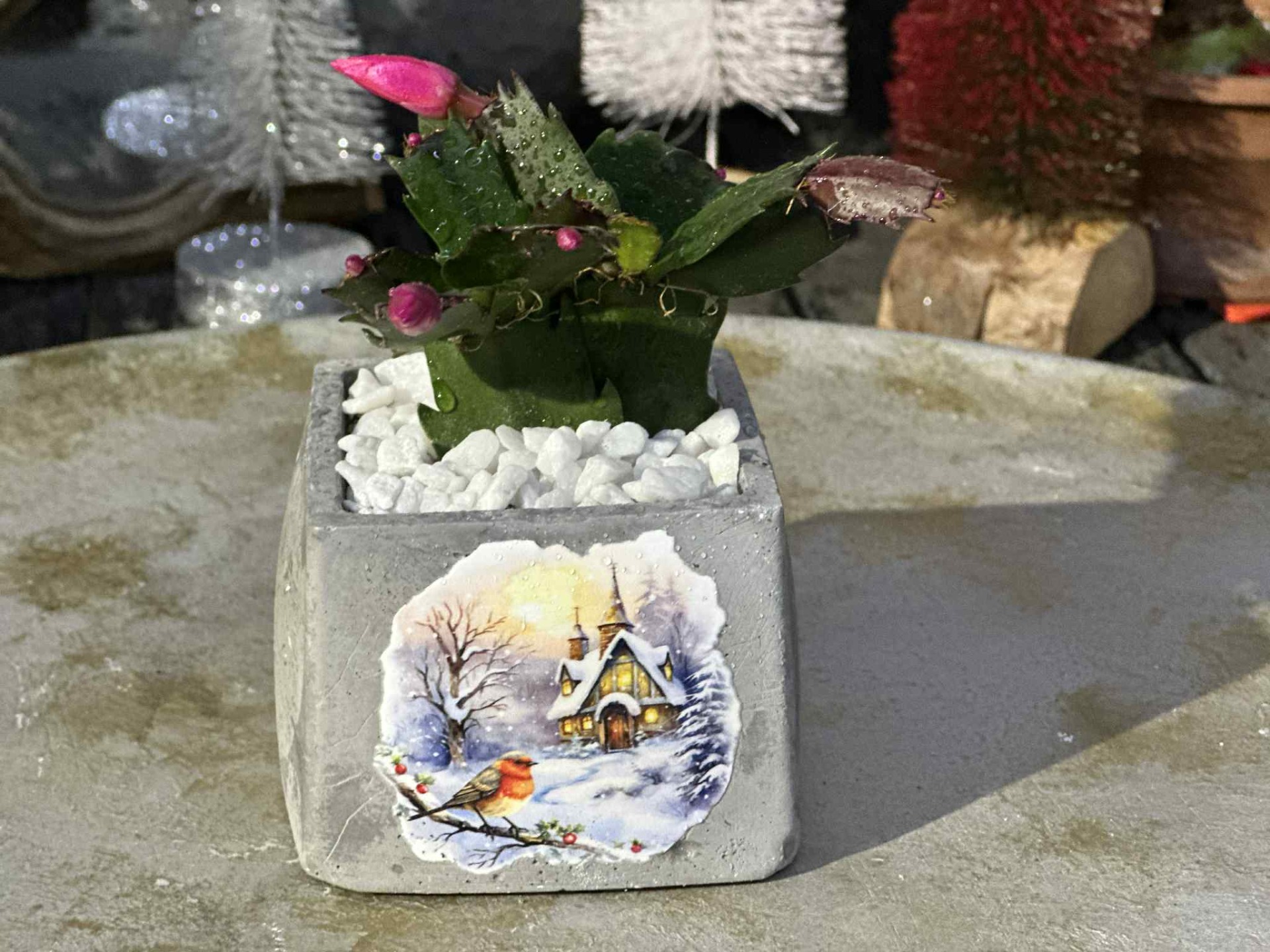 Téli hangulatú, karácsonyi kaktusz kaspóban 3. verzió